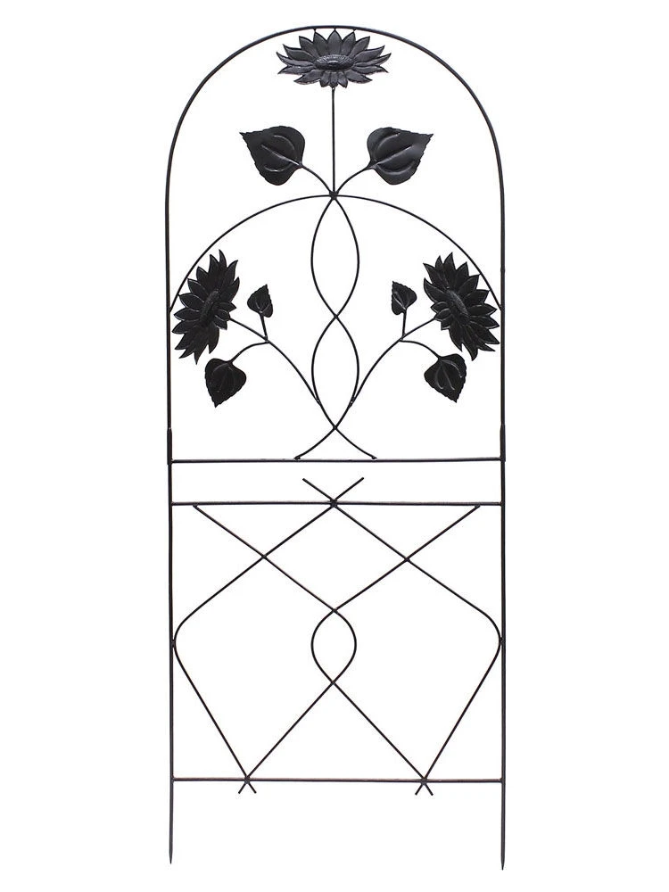 The sunflower is the most quintessential of American garden flowers. A North American native plant it was first domesticated by the people of Arizona and New Mexico who cultivated it for use as food, textile dye, building material and medicine. Spanish explorers then took the seed to Europe where it thrives today, making the sunflower a ubiquitous feature of garden and agriculture alike. This Sunflower Trellis celebrates this glorious flower, in a large-scale arched center trellis and smaller optional side trellises (sold separately). Once staked into the ground, the trellis can be additionally supported with wall brackets.
