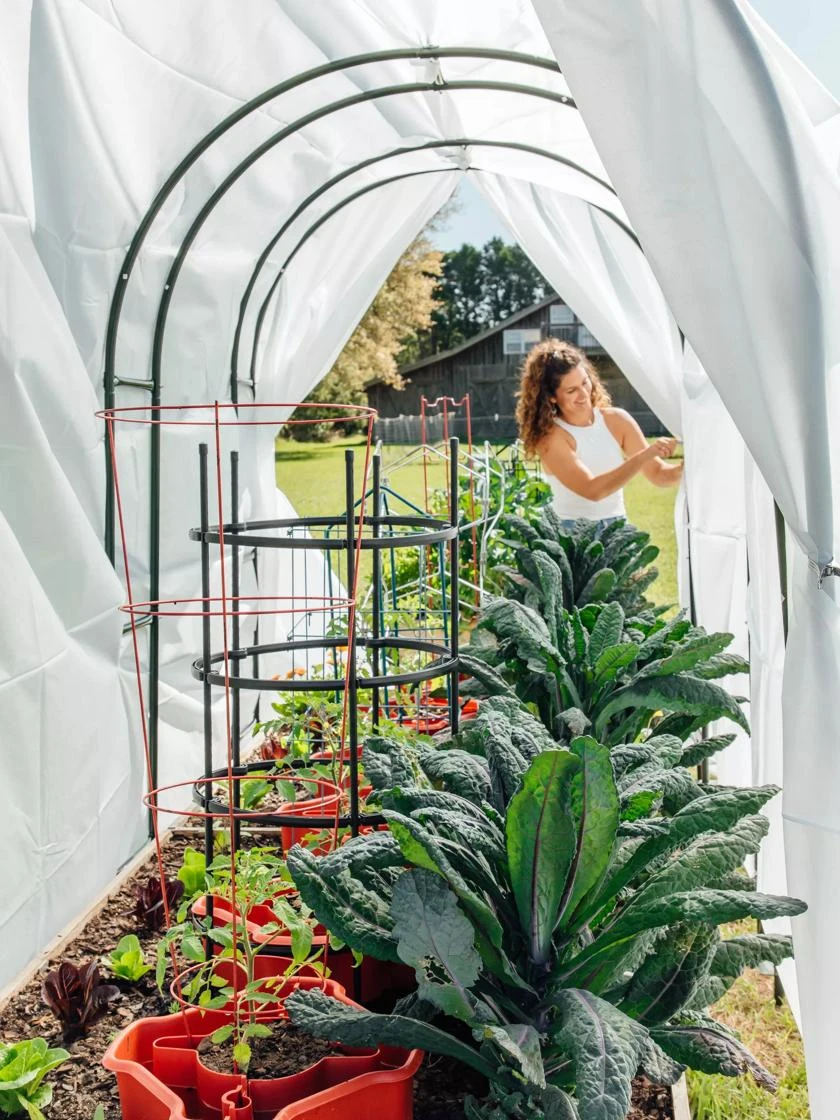 Our tallest hoops will have you growing your garden to new heights! Standing 7′ H installed, these hoops create a walk-in tunnel that’s good for you and your plants. Keep indeterminate tomatoes growing tall from early spring to late fall — or beyond! And with a generous 5′ width, they can straddle your raised or in-ground bed with ease.