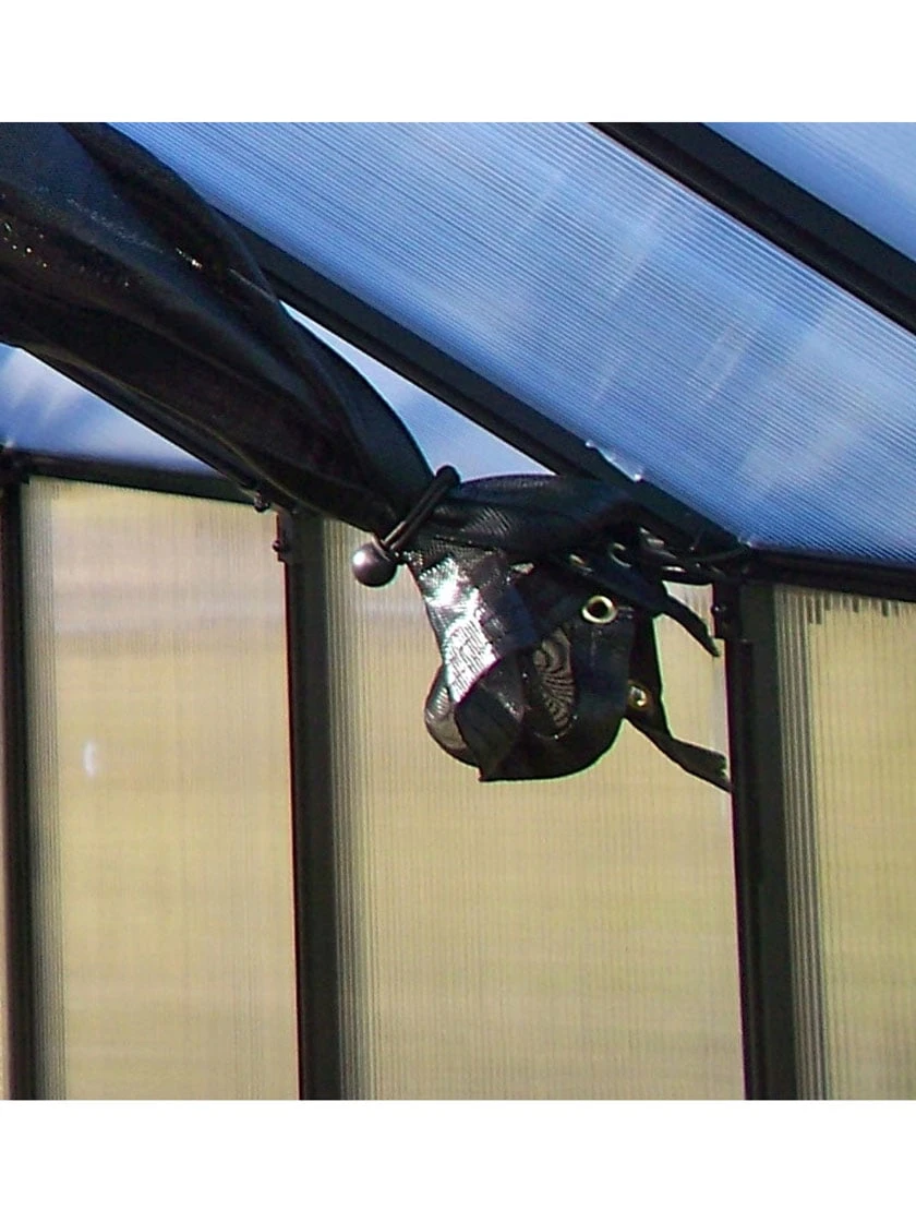 The Monticello 12 foot Shade Cloth Kit is specifically designed for the Monticello line of 12FT greenhouses. The design is simple, unique and thoughtful. Most shade cloths go on the outside of the greenhouse, interfering with roof vent and side window functioning. They are bulky and not easy to set up or take down. The Monticello Shade Cloth kit comes ready to use, no grommet installation needed. The commercial grade shade cloth (rated at 63%) works off a specially designed commercial grade wire system guaranteed to last for 7 years. The shade cloth comes in 4 foot sections so it will work with our Automatic Watering system and since the shade cloth is on the inside, it will not interfere with the Monticello Automatic Vent openers allowing fresh air to flow in and out un impeded. To operate the Shade Cloth System is as easy as pulling the cloth back to open or pulling tight to the other side to close. Just like our greenhouses, the Monticello Shade Cloth is proudly made in the USA from start to finish.